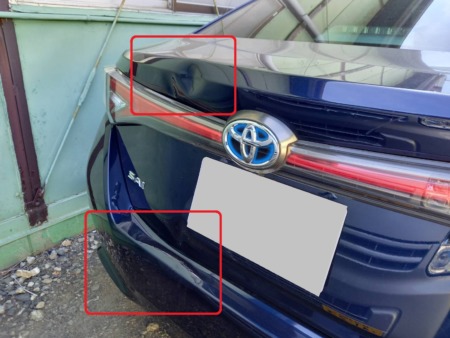 ▼トランク下部、リヤバンパーの損傷の様子です。