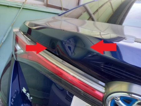 ▼トランクのへこみの様子です。