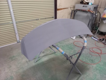 こちらはペーパーで研磨をして下地処理剤のサフェーサーを吹き付けました。