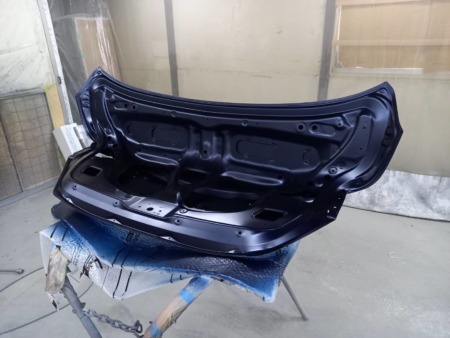 トランクの隣のパネルのリヤフェンダーと色の差がでないよう、ボカシ塗装をしました。