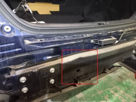 ▼リアバンパーを取り外した内部のバックパネルに損傷がないか確認をします。