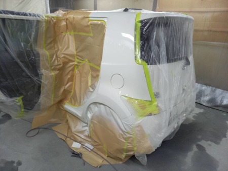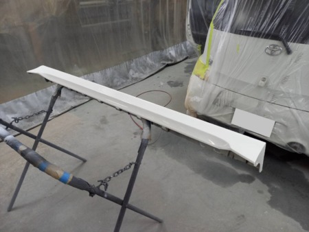 当社で調合した塗料を吹き付けます。ベースカラー→クリアーの順で塗装し、しっかりと乾燥させます。