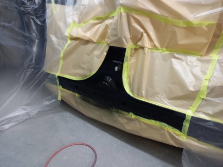 ▼ センターピラーの塗装をしますが室内に塗料が入らないように丁寧にマスキングを施します。