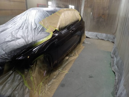 次に塗装面の脂分・ワックス分を専用の溶剤で落とす脱脂の作業をしてから塗装に入ります。