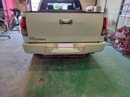 ▼リアバンパーの下地処理を行います。