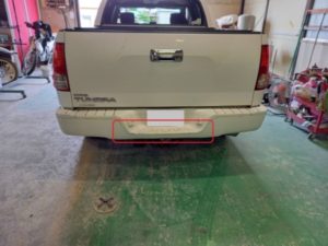 ▼ リアバンパーも同様にマットブラック塗装をします。