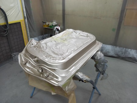 ▼ベースカラーの次にトップコートとしてクリアーを吹きます。