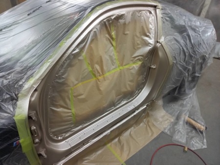 ▼塗料が入り込まないようしっかりとマスキングをしています。