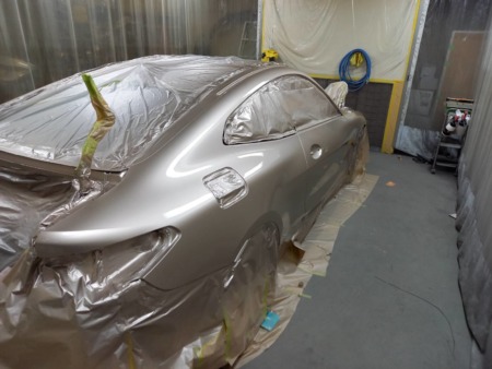 入庫前の写真を撮り忘れていますが、ブラックのボディからオリオンシルバーメタリックへと大変身する様子をご覧ください!